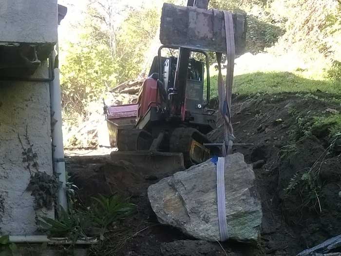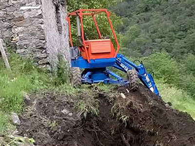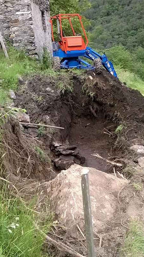 L’impresa edìle Fantoli Antonio e Figlio di Trobaso (Verbania) utilizza macchinari come l'escavatore ragno in grado di lavorare in posti inaccessibili per altri macchinari.